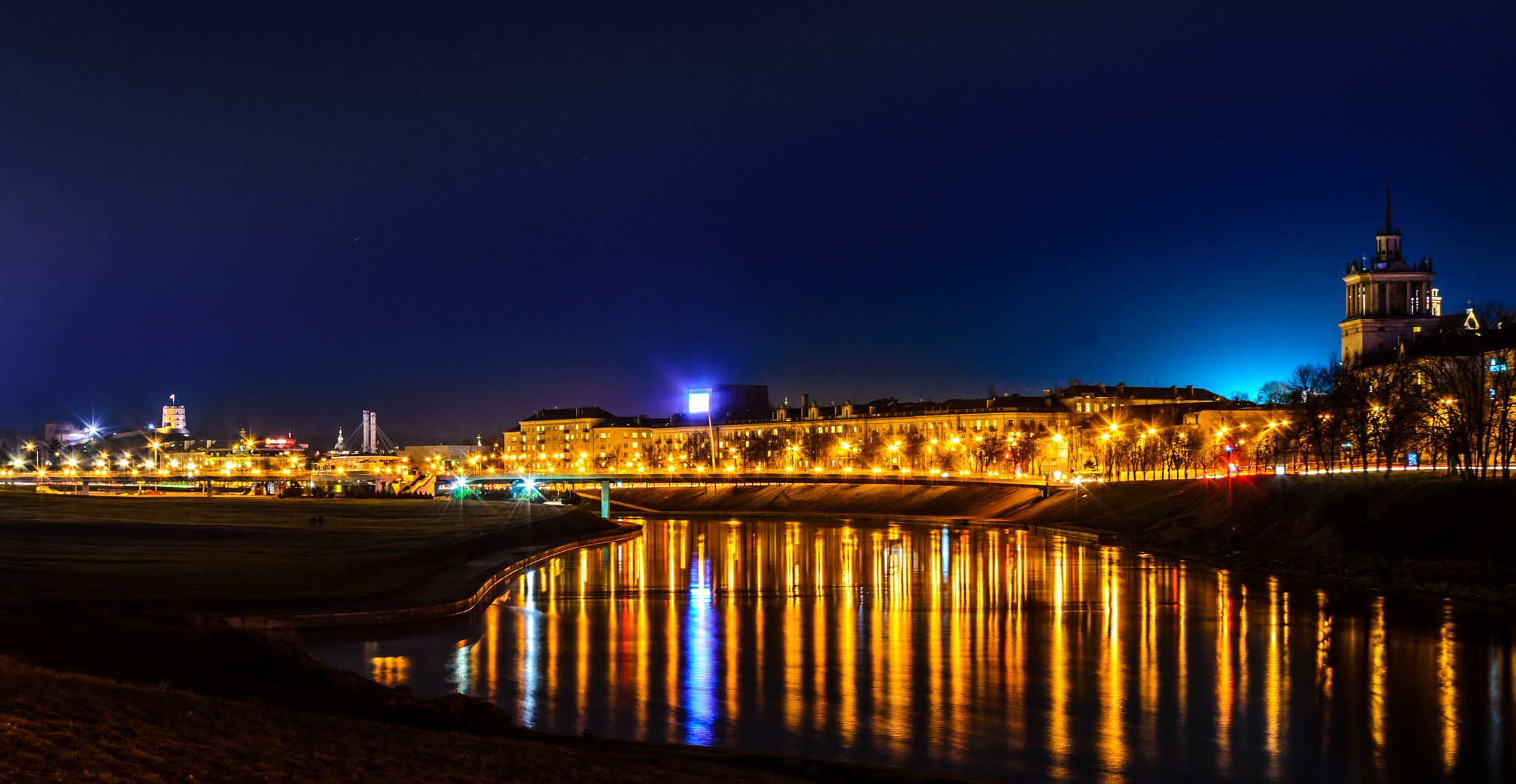 Plaukimas baidarėmis pradedamas Verkiuose, netoli vandens malūno. Plaukimą pradėsite prieblandoje, iš pradžių atrodys, jog plaukiate toli toli užmiestyje, nes šviesų bus nedaug, pasirodys vos viena kita. Tačiau plaukiant artyn centro šviesų vis daugės ir vaizdai gražės. Plaukimas baigsis visai šalia baltojo tilto. Šis maršrutas puikiai tinka poroms, kurios nori paįvairinti savo pasimatymus, draugų kompanijoms, kurios nori nuotykių naktiniame Vilniuje. Šis plaukimas puikiai tiks mergvakario ar bernvakario pabaigai, kaip tik prieš barų ir klubų lankymą!